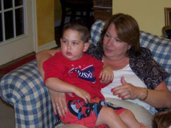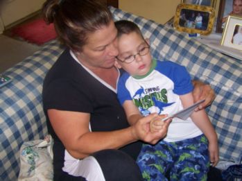 ![]() Caleb and Aunt Pam hanging out on the couch, one of Caleb's favorite spots. |
