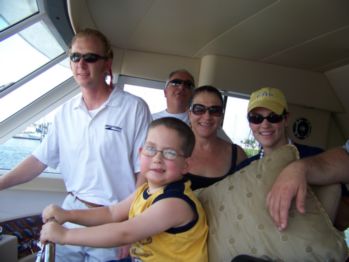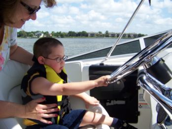 ![]() Aunt Pam & Uncle Bob arranged for Caleb to take a trip out on a boat on Clear Lake! Here, Caleb enjoys driving the boat. "Sir, may I see your operators license, please?" |