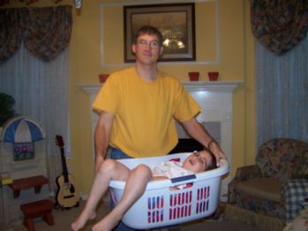 ![]() Caleb used to do this when he was a baby! He'd get in the laundry basket and Mom would carry him upstairs. Well, he's a bit big now, but we have an industrial laundry basket and Dad is strong so ... we did it again because Caleb wanted to!!! |
