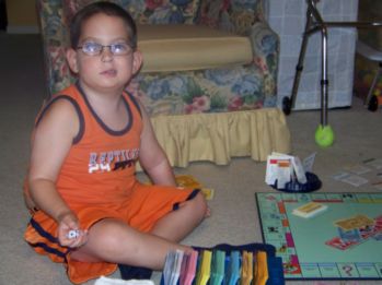 ![]() Caleb and Dad playing a game of Monopoly.