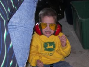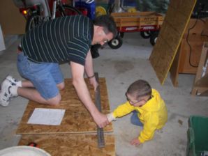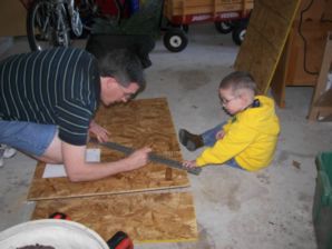 ![]() Caleb sits nearby while Dad prepares to cut the wood. He is learning SAFETY early! He even set out his warning cones and caution tape. |