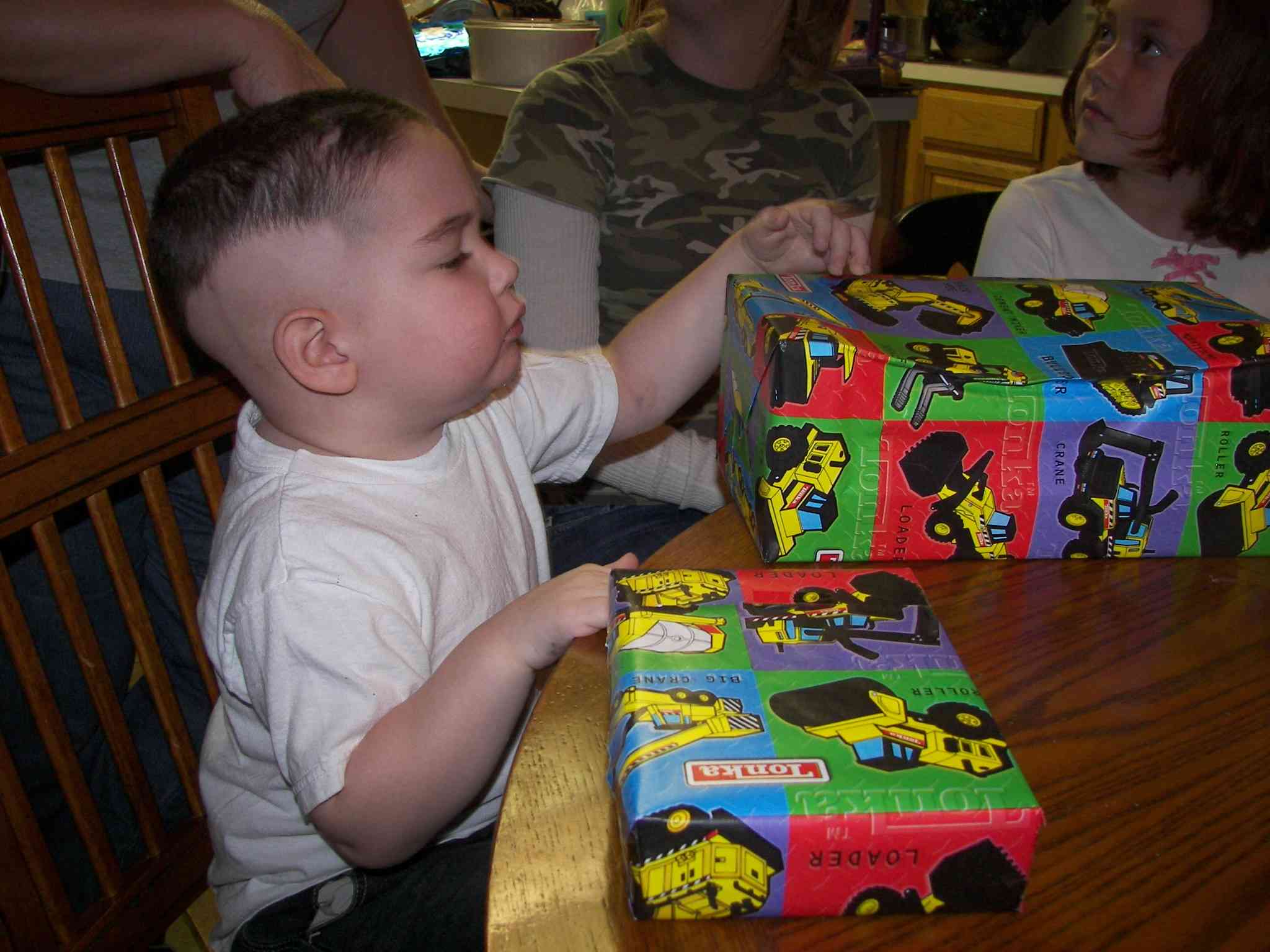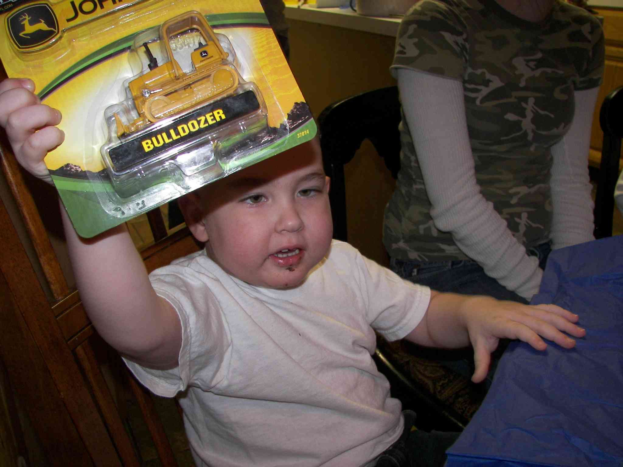 Caleb opens a John Deere Bulldozer!! Right up his alley.