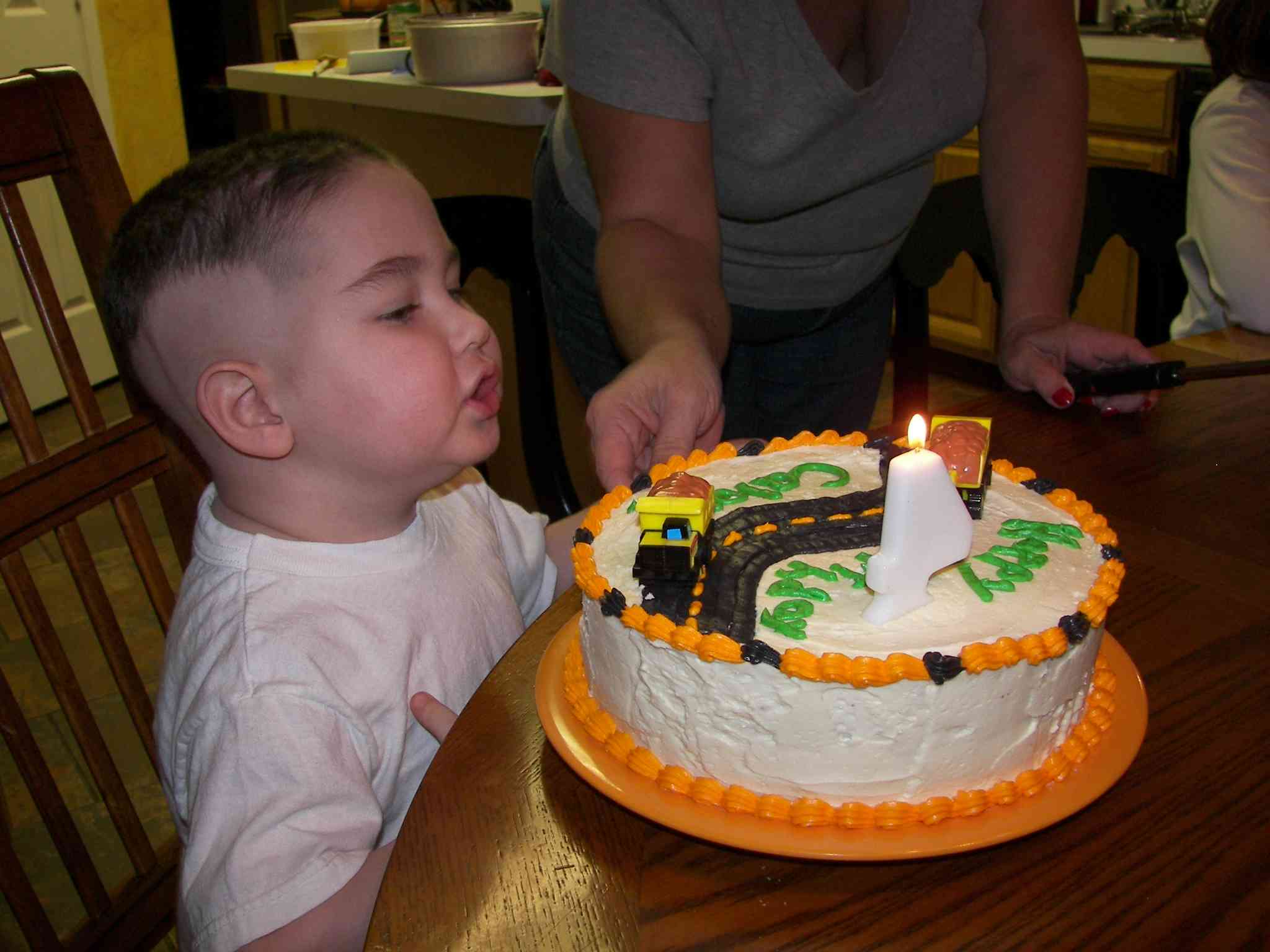 Caleb blows out his candle. He just loved the Cake Annette made. |