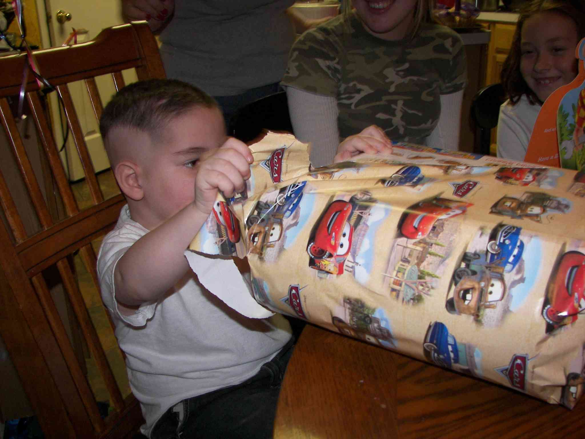 Caleb opens more gifts. Would you know that Caleb is in love with the movie Cars?? His Dad's friend Mr Chris bought him Cars and he's now inseparable from it. He wants to go Tractor Tipping! |