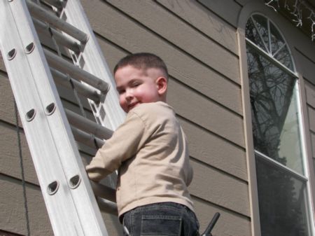 ![]() Caleb works with Dad on hanging lights. No, he didn't climb that high! The picture angle is deceiving. But he would've liked to! |