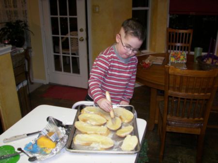 ![]() Caleb makes Garlic Bread for Christmas Eve Dinner. He loves to cook. |