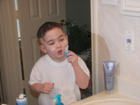 ![]() Caleb "shaves" with his new Thomas shaving kit! One of his favorite gifts. He now Shaves in the morning with Dad. |