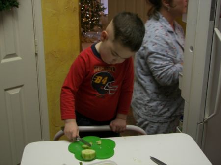 ![]() Caleb works on Christmas dinner. It's a butter knife :-) |