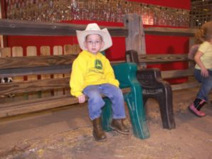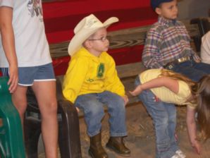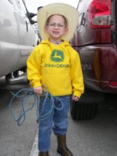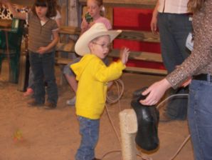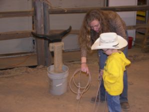 ![]() Caleb, being instructed in the finer arts of roping calves. |