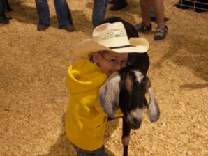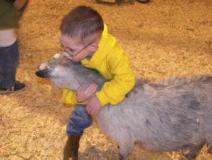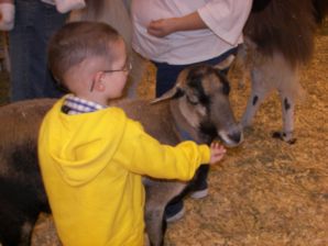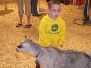 ![]() Caleb just loves animals. Here, he tries to explain to a goat how much. |