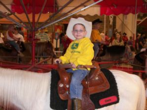 ![]() Caleb loves to ride horses. Here, he's riding Gem. |